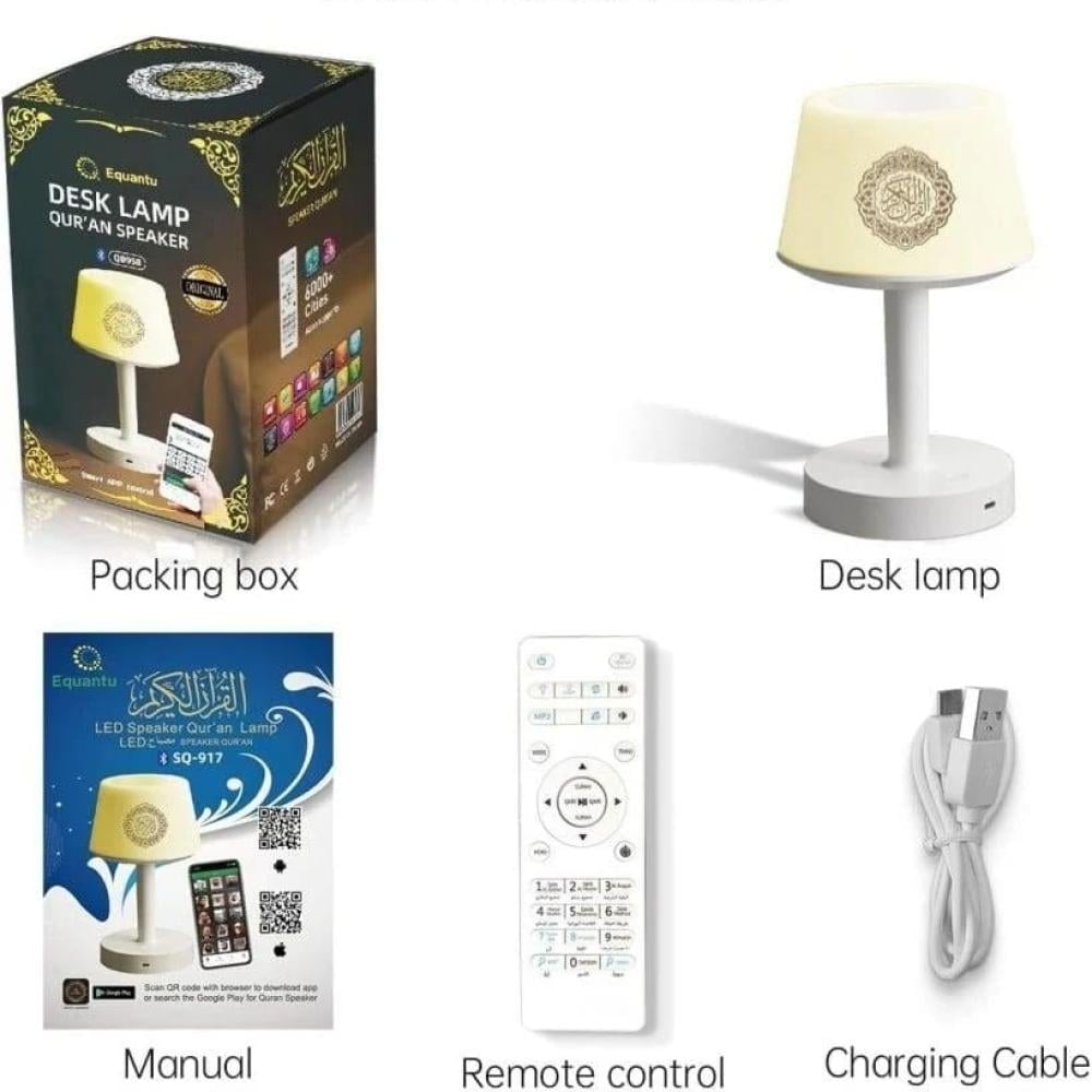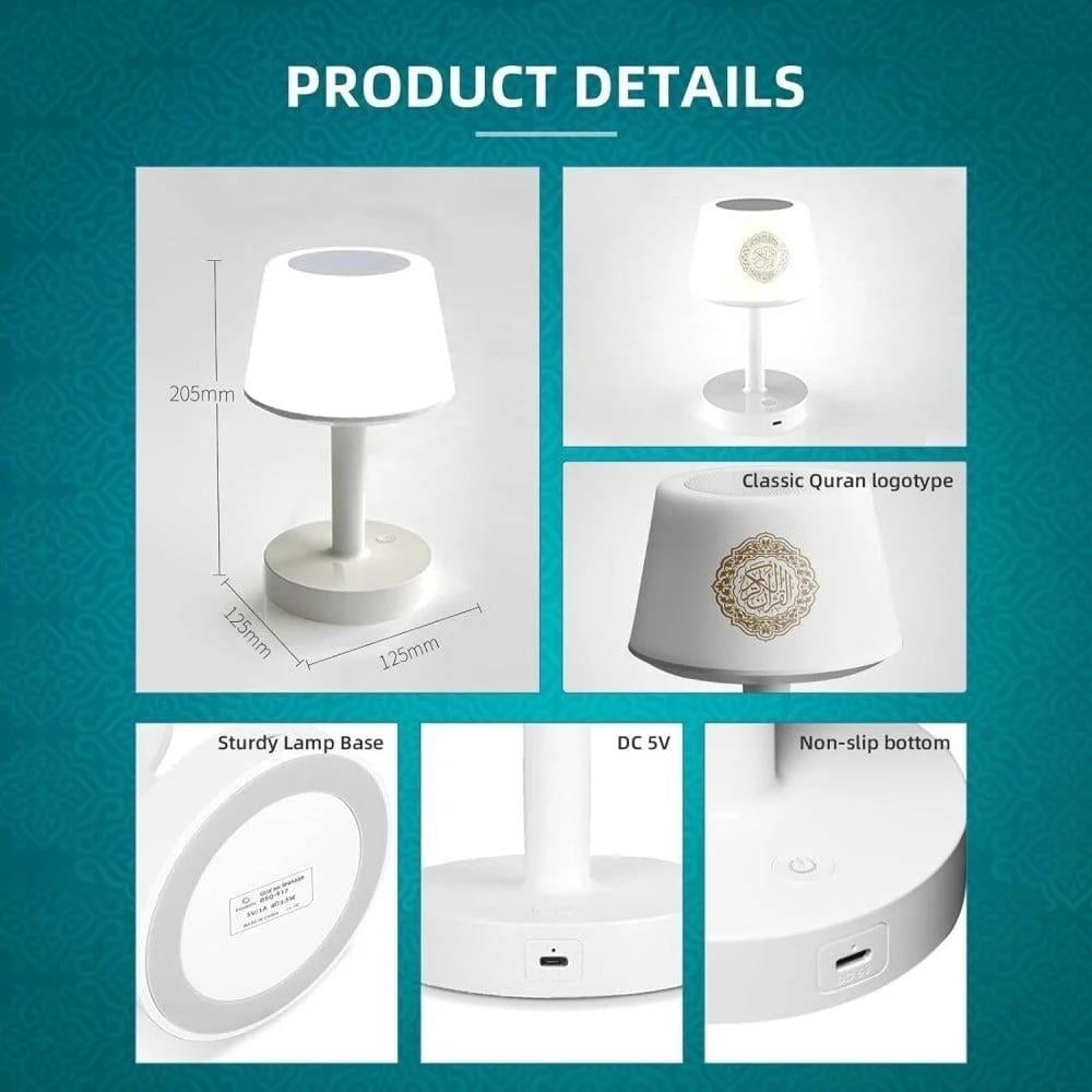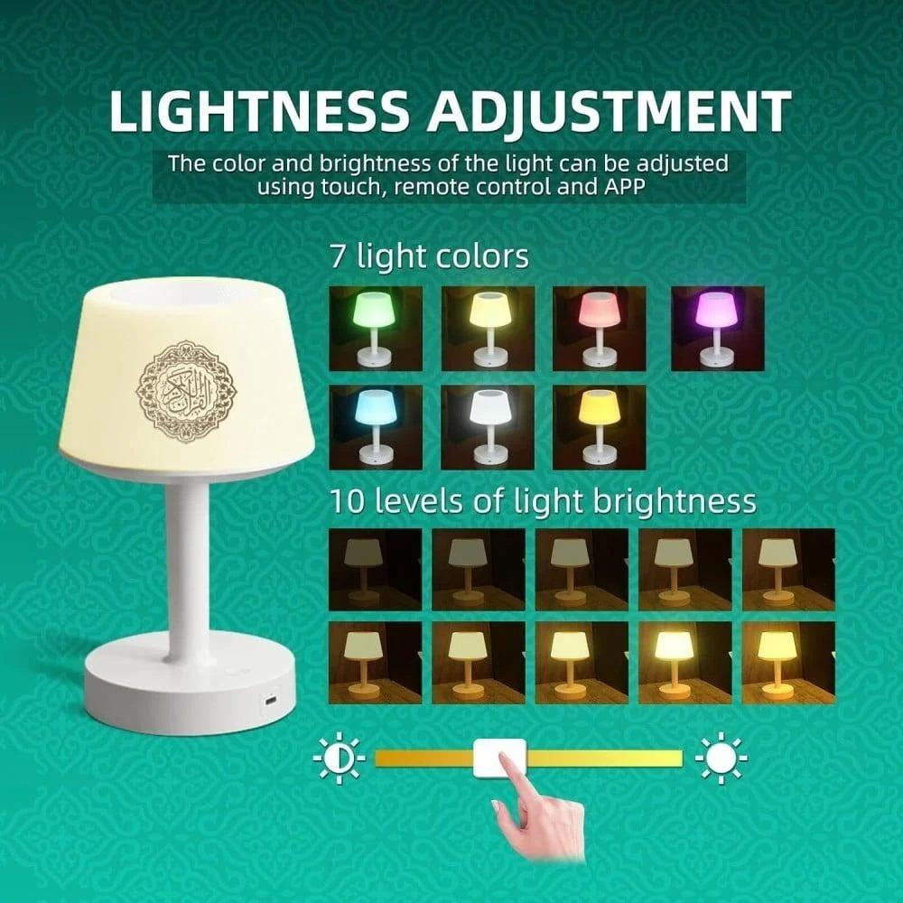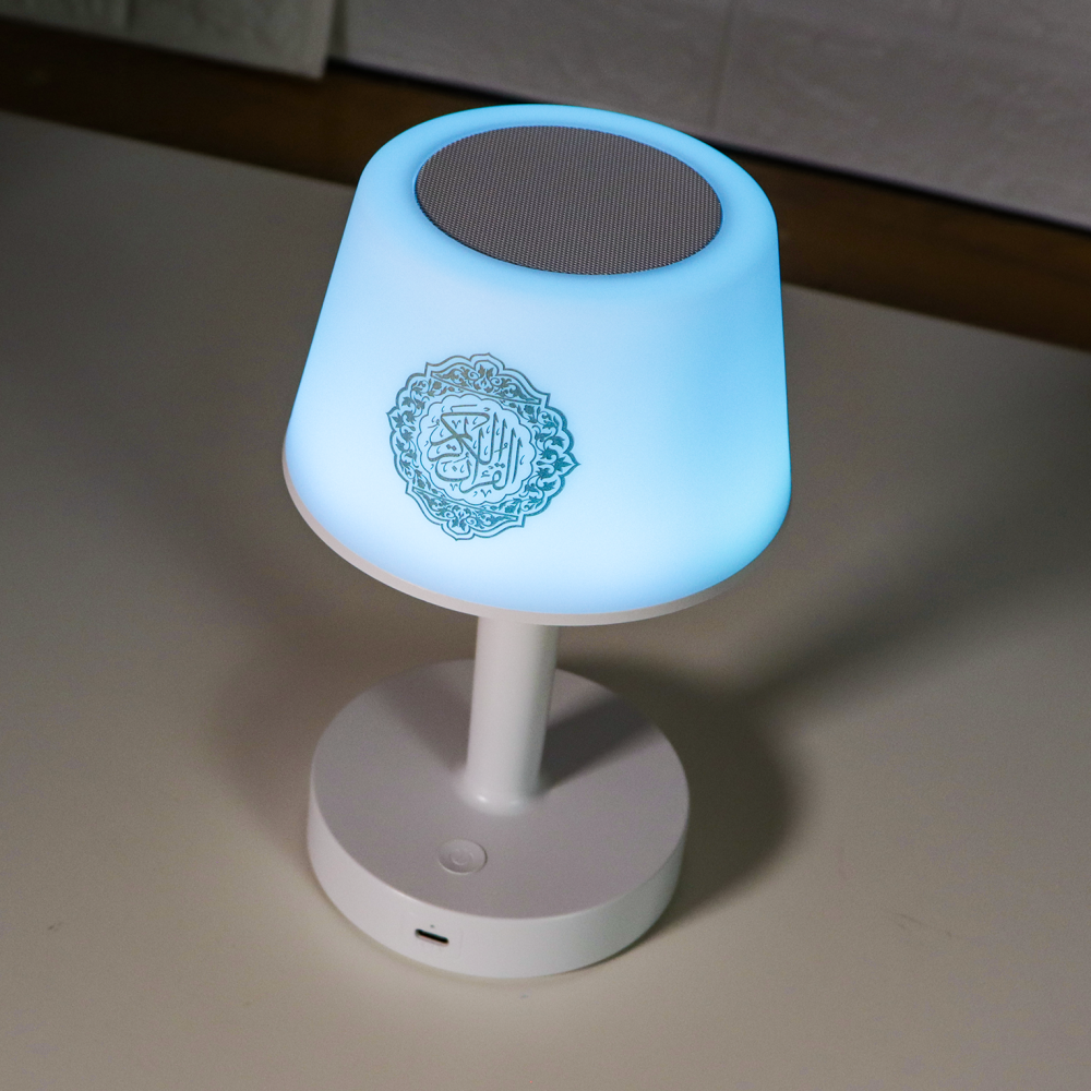 - الوظائف: أباجورة بإضاءة LED متعددة الألوان مع سبيكر مدمج لتشغيل تلاوات القرآن الكريم.