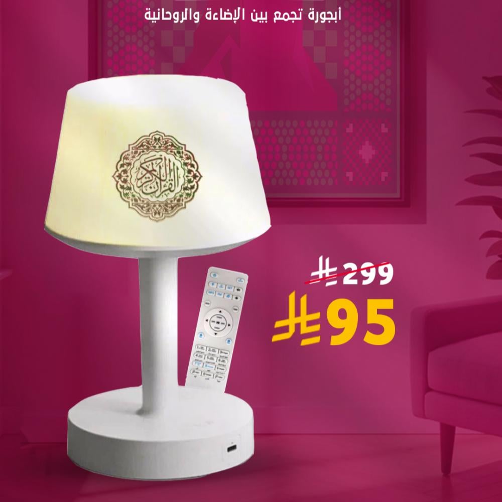 - أباجورة مع سبيكر قرآن كريم: تجمع بين الإضاءة الهادئة وتشغيل تلاوات القرآن الكريم، مما يوفر تجربة مميزة ومريحة.